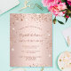 Um convite moderno, na moda e glamouroso para a 50ª festa de aniversário (ou qualquer idade) da mulher. Um fundo metálico rosa dourado falso com brilho falso. O nome é escrito com um moderno e escuro, rosa dourado, escrito com letra de estilo manuscrito. Personalize e adicione os detalhes da sua festa.