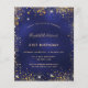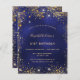 Um convite moderno, na moda e glamouroso para uma festa de aniversário de 21 ruas (ou qualquer idade). Um fundo azul marinho, decorado com poeira falsa dourada. A cor azul é irregular. Personalize e adicione seu nome e detalhes da festa.