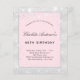 Imagem metálica prateada escura e fundo cor-de-rosa esbranquiçado decorado com pó cintilante prateado sujo. Personalize e adicione um nome e detalhes da parte. Escrito preto, elegante.