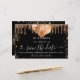 Uma cinta e uma moda Salve a placa Date para uma festa de aniversário 18th (ou qualquer idade). Um fundo preto clássico decorado com brilho de ouro falso e balões. Personalize e adicione uma data e nome/idade. O texto: Salvar a Data é gravado com um script de estilo com letra de tendência grande.