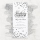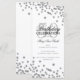 Design de "Programa de Festa de aniversário" elegante com Glitter Confetti em Prata com texto personalizado.
