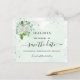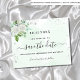 Uma cinta e moda Salve a placa Date para uma festa de aniversário 40th (ou qualquer idade). Um fundo verde e branco, de cor aquosa, decorado com pó cinzento-prateado, florais brancos e verde. Personalize e adicione uma data e nome/idade 40. Letras pretas coloridas. O texto: Salvar a Data é gravado com um script de estilo com letra de tendência grande.