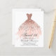 Convite de aniversário doce 16 elegante e acessível, com uma aquarela de um vestido de ouro rosa com acentos de brilho e "Doce Dezesseis" e seu nome em um roteiro de na moda.