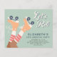 Convite de aniversário verde de patinagem de patinagem orçamental para qualquer idade com "Roll de Vamos!" num script branco e uma ilustração retrorinspirada de skates de roletas laranja numa rapariga que veste meias de tubos riscados vermelhos e brancos. Adicione seu nome e ano de aniversário à tipografia azul-lacre escura.