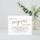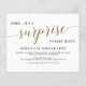 Festa de aniversário de Surpresa do Script Na moda de Dourado Orçamento. Como parte da seleção do orçamento aqui no Zazzle, estes convites não vêm com envelopes nem ajustado de forma suave em um envelope de tamanho padrão. O tamanho mais próximo é A6, mas haverá um intervalo de aproximadamente meio polegada. Se não se importa com a falta de humor, você poderia usar envelopes A6 tão disponíveis. Caso contrário, esse design pode ser transferido para um formato padrão 5x7 (que vem com envelopes) usando a ferramenta de transferência design. Como guia geral, a partir do momento do escrevendo (janeiro de 2021), 100 convites orçamentários (incluindo um desconto por volume) custariam cerca de US$ 39, enquanto 100 convites padrão 5x7, incluindo envelopes, custariam aproximadamente US$ 135. Sua quilometragem pode variar dependendo dos códigos de promocionais disponíveis do Zazzle, das vendas em todo o site ou das mudanças nos preços.