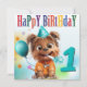 Terrier Fofo com Chapéu de Festa e Corneta, Celebra um Aniversário.
