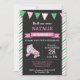 Partido de primeiro aniversario do convite do aniversário da patinagem de rolo. A festa de aniversário da menina convida. Festança temático do aniversário do esporte da patinagem de rolo. Fundo verde cor-de-rosa do quadro das listras das cinzas e do branco. ø Primeiro aniversário. ø ò ó 4o 5o 6o 7o 8o 9o 10o 11o 12o 13o 14o ` 5a, alguma idade. Digitas Printable. Para uma personalização mais adicional, clique por favor "personalizam-no" botão e usam-nos nossa ferramenta de design para alterar este modelo.