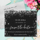 Uma cinta e moda Salve a placa Date para uma festa de aniversário 50th (ou qualquer idade). Um fundo preto clássico decorado com pó falso de prata brilhante. Personalize e adicione uma data e nome/idade. O texto: Salvar a Data é gravado com um script de estilo com letra de tendência grande.