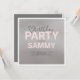 Este convite de aniversário quadrado apresenta seu nome definido em uma fonte ousada moderna com a palavra Aniversário e um coração em tipografia escrita à mão e festas em rosa-pincelado sobre um fundo falso de prata. A carta de convite reverte para uma cinza de carvão complementar. Uma escolha fofa para a querida da sua menina Primeira Festa de aniversário até aos 16. Para ver mais informações sobre este pacote de convites para Dias de os namorados, visite DoTellABelle no Zazzle.