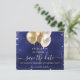 Uma tendência Salve a data para uma festa de aniversário 18 (ou qualquer idade). Um fundo azul marinho incolor. Decorados com balões azuis e falsos de ouro e ouro. O texto: Salvar a Data é gravado com um script de estilo com letra de tendência grande.