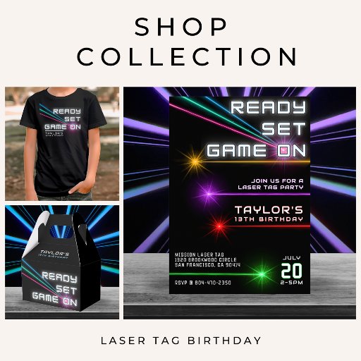Etiquetas de 13 de festa de aniversário colorido de laser neon para crianças. Personalize-o com os detalhes do evento.