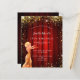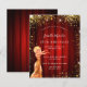 Um convite moderno, elegante e glamoroso para uma festa de aniversário de 18 anos (ou qualquer idade), tema Hollywood. Um fundo vermelho com pó de glitter dourado falso, uma garota vestindo um vestido dourado. Uma cortina de cinema vermelha como fundo. O nome é escrito com uma fonte moderna de letra manual. Personalize e adicione os detalhes da sua festa.