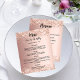 fundo de gradiente rosa dourado. Texto preto. Decorado com confete. Frente: personalize e adicione seu nome, data e menu. Voltar: Programa. Se você tiver um grande programa, poderá reduzir o espaçamento entre linhas. 1 folha = 1 menu/programa impresso borda a borda.
