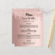 fundo de gradiente rosa dourado. Texto preto. Decorado com pingos, pintura pingando aparência. Frente: personalize e adicione seu nome, data e menu. Voltar: Programa. Se você tiver um grande programa, poderá reduzir o espaçamento entre linhas. 1 folha = 1 menu impresso borda a borda.