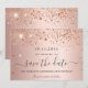 Uma cinta e moda Salve a placa Date para uma festa de aniversário 40th (ou qualquer idade). Um fundo metálico cor-de-rosa feminina, rosa dourado falso, decorado com poeira falsa rosa dourada. Personalize e adicione uma data e nome/idade 40. Letras rosa escuras de cor dourada. O texto: Salvar a Data é gravado com um script de estilo com letra de tendência grande.