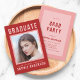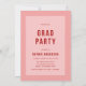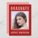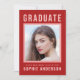 Anúncio de graduação vermelho e convite de festas formando. O convite tem um lado vermelho claro. Personalize-o substituindo o texto do marcador de posição e substitua a foto do marcador de amostra/marcador de posição por sua própria foto. Para obter mais opções, como alterar a fonte e seu tamanho/cor ou o espaçamento entre letras, clique no botão "Personalizar". *Observe que a Marca d'água do Zazzle que aparece na visualização de zoom NÃO aparecerá no produto impresso final. © Rosewood e Citrus