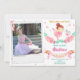 Dance e Twirl! Convite de aniversário de Ballerina com convite de aniversário de uma garota convite para uma festa de dança de Ballerina. Convide os seus amigos com este convite para o tema da bailarina cor-de-água, rosa! Este convite de aniversário de Balé apresenta pequena bailarina em tutu cor-de-rosa, dois pássaros segurando uma faixa e algumas flores ao redor. Simplesmente edite este menu de personalização fácil de usar modelo para torná-lo especial.