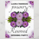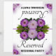 Papel de 110 lbs Foldable Reserved Festa de casamento Sinal - Dahlia Purple Lavanda Lilac Floral Sinal Reservado. Lindas, elegantes, e modernas flores roxas escuras e leves da Dahlia com folhas verdes. Essas cores podem ser usadas para temas de casamento roxos e temas de casamento lavanda/lilás. Perfeito para um casamento de outono/outono, casamento de verão ou um casamento de primavera. Para itens correspondentes, copie e use este link ou entre em contato comigo na página 'Sobre'. https://www.zazzle.com/collections/purple_lavender_dahlias_floral_wedding_invitations-119455506708712978 Você pode personalizar e personalizar o texto, a cor do plano de fundo e mover as imagens onde quiser. Você também pode escolher a espessura e o tipo do papel.