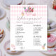 "Algo Doce está se preparando". Chá de fraldas temático da festa do chá de água. Uma xícara de água de chá, macarões, cupcakes e flores. Rhomb rosa.
