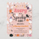 [Todo o texto é editável, exceto "é um fantasma assustador"] Tema: Pequeno fantasma bonitinho do Halloween. Estilo: Bonita, Elegante, Girly. Cores: rosa, branco, laranja. Gráficos: Pequeno fantasma bonito, abóbora, gato preto.