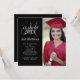 Convite para Graduação Moderna Preta e Branca com Monograma. Personalize com seu ano de classe de graduação e formando informações selecionando "personalizar" e usando os prompts de menu fáceis de usar do Zazzle. Troque a foto de exemplo por sua. Design flexível para permitir a escolha de vários tamanhos diferentes de placas, dependendo da sua foto do seu formando.