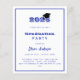 Um convite moderno e na moda para uma festa de formatura. Para ele e para ela. Fundo branco, texto azul e um quadro. Um boné de formatura preto. 1 folha = 1 convite impresso de borda a borda.