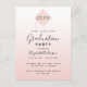 Um cartão de convite elegante, simples e feminino para uma festa de formatura de 2025, ou qualquer ano. Ouro-rosa chic e fundo ombre de gradiente branco e uma moderna tampa-abstrato, com dentro de ano. Modelo para detalhes de nome e festa. O texto Graduação e o nome são escritos com um script de estilo manuscrito moderno. Texto a preto. Verso: rosa de gradiente dourado.