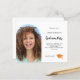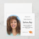 Adicione sua própria foto vertical do formando. Um quadro fotográfico em forma de arco. Uma cor de fundo branca clássica. Personalize e adicione um nome e detalhes da parte.