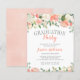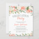 Bonitos convites para festas de formatura florais. Design apresenta rosas pintados à mão de aquarelas, peônias e híbridos em tons ou cor-de-rosa pincel, pêssego, coral e creme.