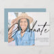** SATIN PAPER É PAPEL FINO. ATUALIZE O PAPEL PARA OBTER UM PAPEL MAIS ESPESADO. TEM UMA OPÇÃO PARA ENVELOPES. *** Economize dinheiro em anúncios com este pequeno anúncio que tem uma opção para envelopes. Comemore sua graduação em estilo com seus cartões de Convite para Graduação de Formando de Foto H do Script Chic. Quer uma versão maior do stock de cartão? Consulte nossa coleção de Graduação para obter cartões: https://www.zazzle.com/collections/graduation_invitations_stationary-119494558862832145?rf=238937196885903396