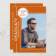 Festa de formatura de fotos O moderno Script Orange White Invances apresenta sua foto favorita com o texto simples "Formando" e seu nome e detalhes personalizados de graduação. Personalize editando o texto nas caixas de texto fornecidas e adicionando sua foto favorita. Personalize com as informações do convite de formatura no sentido inverso. Criado por ©Evco Studio www.zazzle.com/store/evcostudio