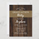 A madeira russa de madeira e burlap parece um convite para festa de formatura de fotos não-isex feito por Designs Holiday Hearts (direitos reservados) com crédito de modelo para Talen de Ruas. Croix of Unsplash. Frente mostra sua foto de formando na posição vertical com uma tábua de olhar de madeira no final do ano de graduação, o nome do estudante e a escola. O verso apresenta os detalhes da celebração da graduação.