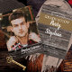 A madeira russa de madeira e burlap parece um convite para festa de formatura de fotos não-isexo feito por Designs Holiday Hearts (direitos reservados) com o crédito de foto modelo a Meireles Neto da Unsplash. Frente mostra sua foto de formando na posição vertical com uma tábua de olhar de madeira no final do ano de graduação, o nome do estudante e a escola. O verso apresenta os detalhes da celebração da graduação.