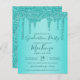 Aqua Teal Sparkle Glitter Coloca a Festa de formatura Convite com o seu monograma e nome com a nossa tenda falso brilho no fundo de uma glamourosa cheira aqua (turquesa). Você está pingando no luxo, então mostre! Perfeito para sua estética de brilho! **O nosso documento sobre o ORÇAMENTO é mais pequeno e delicado, mas ainda é bonito!** Se precisar de assistência ou de elementos correspondentes, contacte-nos em cedarandstring@gmail.com.
