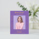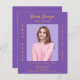 Personalize e adicione uma foto, nome, nome da escola, classe e detalhes da festa. Uma cor de fundo roxa, lavanda, texto do ouro. 1 folha = 1 convite impresso de borda a borda.