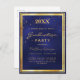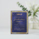 Um cartão de convite para uma festa de formatura para caras, rapazes, homens. Cor de fundo azul escura e irregular e chuva de confete de ouro. Com uma falsa armação de ouro. Modelo para detalhes de nome e festa. O texto Graduação e o nome são escritos com um script de estilo manuscrito moderno. Ouros. Voltar: sem cor de fundo.