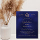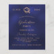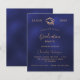 Um convite moderno e elegante para a festa de formatura. Um fundo azul marinho, texto do ouro. A cor azul é irregular. Personalize e adicione um nome, ano e detalhes.