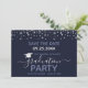 Elegante confetti prateado destaca na borda superior e inferior. Todo o texto é ajustável e fácil de mudar para as necessidades do seu próprio partido. Excelente elegante salva o design de modelo de graduação de data. Segundo grau ou faculdade.