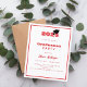 Um convite moderno e na moda para uma festa de formatura. Para ele e para ela. Fundo branco, texto vermelho e um quadro. Um boné de formatura preto. 1 folha = 1 convite impresso de borda a borda.