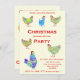 Galo Festivo e Convites de festas de Natal. Ilustrações lindas e coloridas de galinha psíquica em tons vibrantes rosa, roxo, azul, laranja, amarelo e aqua vestindo chapéus de Santa. Uma bela festa de Natal de frango louco e multicolorida que é fácil de personalizar usando os modelos. Crie um único galo de arte animal fazenda e, quando o convite da festa de Natal temático for adequado para crianças e amantes adultos de frango. Arte original da artista Catherine Sweetman
