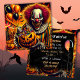 Convites de festas de Halloween. Palhaço assustador com balões negros e laranja para a sua assustadora festa de Dia das Bruxas.