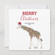Uma girafa engraçada entrando no espírito natalino vestindo um chapéu de Papai Noel. Mande seus desejos de Natal em um estilo único e faça seus amigos e família se divertirem. Design de Natal ideal para o teu decoro de Natal e presentes. Personalize o texto e torne-o seu.