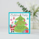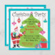 Moderno com um toque de retrato, este Convite de festas de Natal apresenta uma árvore verde brilhante para suas informações sobre festas, Papais noeis e presentes de Natal. Os ornamentos brilhantes e coloridos pendem das palavras "Festa de Natal". Um convite para sua festa de férias. Ilustração desenhada à mão por McBooboo.