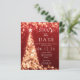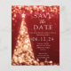 Festa de Natal Elegante / Festa de inverno / Festa de Natal / Anúncio do Festa de Natal Corporativo "Salve a Data" com árvore de Natal dourada em fundo vermelho.
