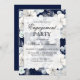 Festa de noivado convite flor branca sakura marinho azul