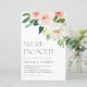 Convide convidados para o seu evento com este convite de festa de noivado personalizável. Apresenta buquê floral de cor d'água de rosas, rosa e brancas, dahlias e peonias. Personalize adicionando seus detalhes. Este convite à festa de noivado floral é perfeito para casamentos de primavera e jardim.