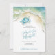 Este convite para a festa de noivado de praia apresenta seus nomes em uma tipografia de script manuscrita com na moda com detalhes de eventos em uma seringa de cinzas de carvão clássico, se houver um fundo branco nítido com uma borda superior da minha tartaruga marinha e ondas oceânicas originais em tons de blues, verdes e turquesa. O cartão de convite reverte para uma cor azul-turquesa tropical complementar. Uma escolha costeira, mas elegante para a sua festa de noivado. Para ver a suíte de papelaria de casamento de Victoria Grigaliunas, visite DotellABelle no Zazzle.