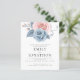 NOTA Há duas opções de papel a escolher para este tamanho (4,5 x 5,6") na faixa de Orçamento. Para este produto, eu recomendaria o semibrilho, que é um estoque de cartão de 110 gsm, semelhante em espessura a um cartão postal. A opção Satin é um papel muito mais fino, 80gsm. O padrão é definido como semirbrilho. POR FAVOR, NOTE que existe UM por folha. Festa de noivado de de Florais Azul Moderno de Orçamento. As flores de artsy, azul pastel poeirento e cor-de-rosa esfarelado, fluem do topo. Personalize facilmente o texto para seus próprios detalhes.