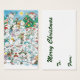 Ilustração engraçada de vintagem Feliz de Natal, com bobo, alegres animais, ursos polares com chapéus e pinguins com lenços, brincando na neve com árvores decoradas de Natal, presentes de Natal embrulhados e doces. Há estrelas brilhando no céu noturno enquanto os flocos de neve caem na floresta. A placa diz "Partido". Brincadeira na neve de inverno.
