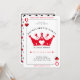 Legal rainha dos corações jogando o convite de festa de solteira de cartas. Personalize-o com os detalhes do evento. Excelente para um pôquer ou a celebração temática de Las Vegas.